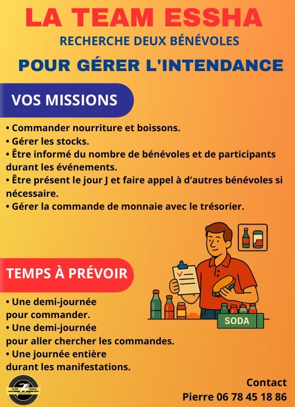 Nous recherchons deux personnes motivées pour reprendre ses missions : gestion des stocks, commandes de nourriture et présence indispensable lors des manifestations… notamment derrière le bar, un poste où l’on gère aussi bien le chocolat chaud que la saucisse, un rôle essentiel à la vie du club.